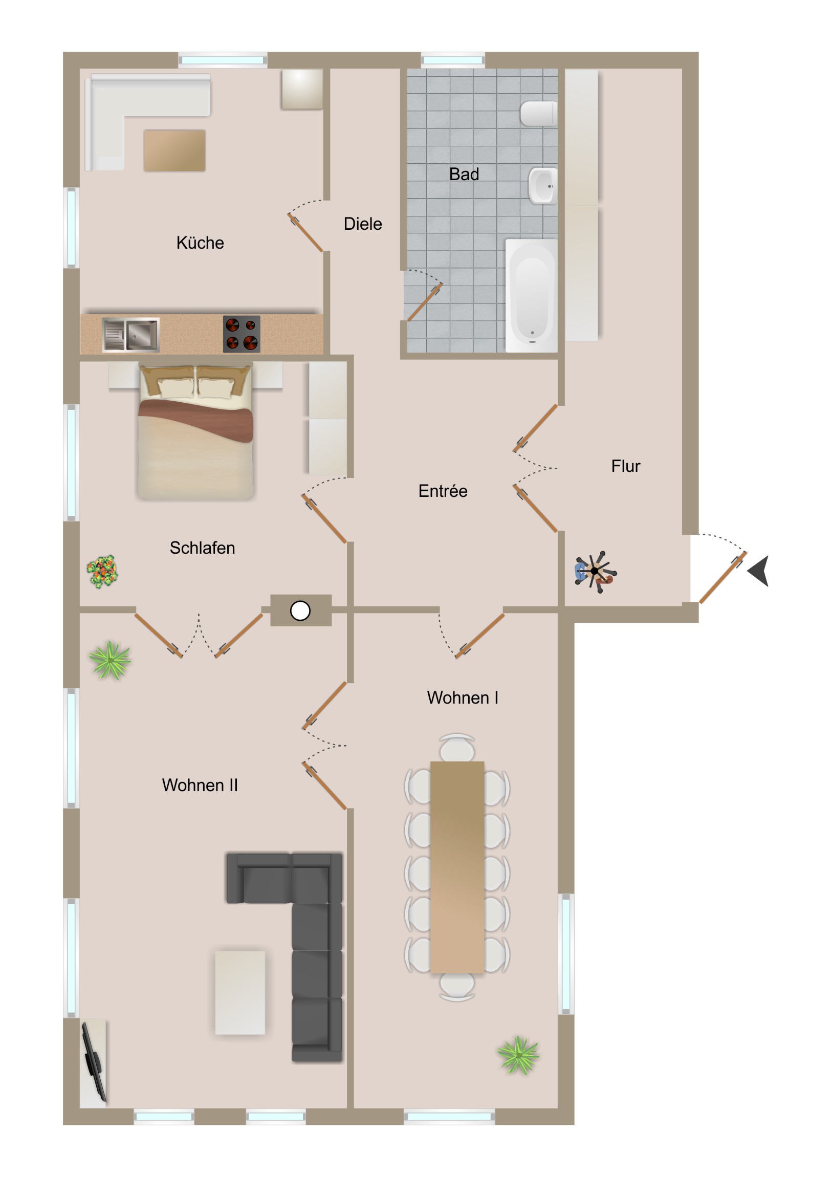 – 3 Zimmer inkl. 1 Schlafzimmer (je nach Aufteilung)